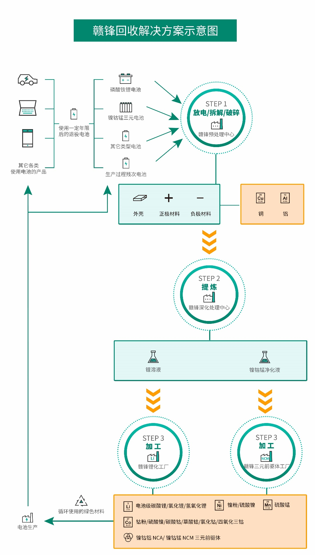 回收所产生的三元前躯体、锂盐等产品,将在质检合格后,重新被应用于生产动力电池、消费设备电池或工业加工流程中。